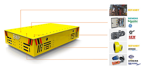 BWP:電動無軌膠輪車是一種以蓄電池作為電源,電機減速機作為驅動系統,實心包膠車輪直接在地面行走的轉運車,其運行不受限制,進口的車輪保證地面不受損壞,360°原地轉彎適應更狹小的空間運行,360度無死角防護、遇人自動停止等功能,保證了運行過程中的問題。觸摸屏、搖桿操作等設計使操作更加人性化